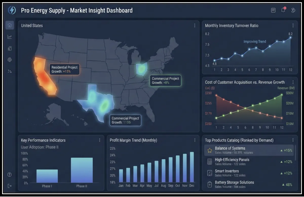 Founded by industry veterans with 46+ years of combined leadership in AI technology, distribution, supply chain, and solar manufacturing, ProEnergy Supply modernizes how solar and electrical contractors, designers, and other service professionals procure products and materialsâturning a once manual and fragmented process into an intelligent, automated workflow.